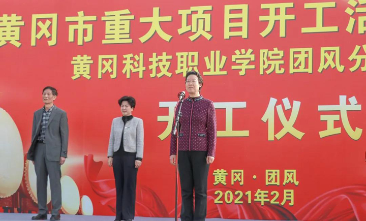 上午8時(shí)58分,在活動(dòng)主會(huì)場(chǎng)——黃岡科技職業(yè)學(xué)院團(tuán)風(fēng)分校項(xiàng)目施工現(xiàn)場(chǎng),項(xiàng)目開工儀式正式開始。儀式上,黃岡市委副書記、市長(zhǎng)邱麗新宣布項(xiàng)目開工,這標(biāo)志著團(tuán)風(fēng)縣第一所高等院校的建設(shè)拉開序幕。