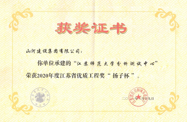 近日,2020年度江蘇省優(yōu)質工程獎“揚子杯”獲獎項目名單揭曉,山河建設集團江蘇公司承建的江蘇師范大學分析測試中心工程榜上有名。這是江蘇省建筑工程質量最高獎項,也是繼徐州市鼓樓區(qū)琵琶街道辦事處養(yǎng)老服務中心項目之后,江蘇公司再次獲此殊榮。