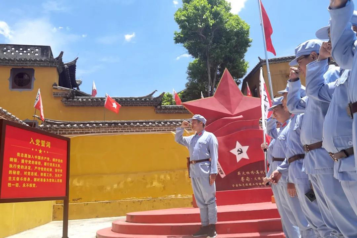 上午9時,全體黨員、預備黨員、發(fā)展對象、入黨積極分子等近50人整裝出發(fā),乘車前往120公里外的丹桂紅軍村。這個看起來不起眼的小村莊,見證了中央紅軍巧渡金沙江的偉大壯舉,也見證了中國革命史上的一次重大轉(zhuǎn)折。抵達目的地后,大家身著戎裝,英姿颯爽地走進丹桂紅軍村,開始了這場紅色之旅。