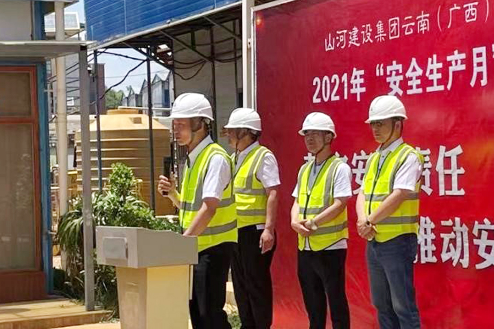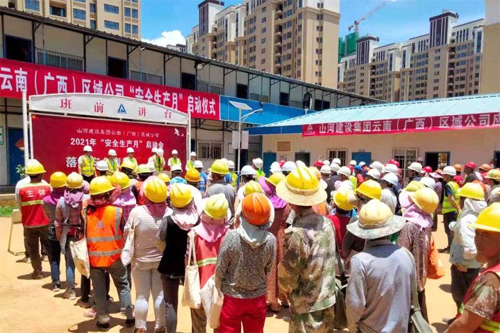 5月29日,山河集團(tuán)正式啟動(dòng)2021年“安全生產(chǎn)月”活動(dòng)。云南(廣西)公司迅速響應(yīng),于當(dāng)日下午在昆明龍四地塊城市棚戶區(qū)改造項(xiàng)目施工現(xiàn)場舉行了2021年“安全生產(chǎn)月”活動(dòng)啟動(dòng)儀式。公司副總經(jīng)理劉火焱、秦大順,工程團(tuán)隊(duì)全體人員,各項(xiàng)目部代表等150余人參加了啟動(dòng)儀式。