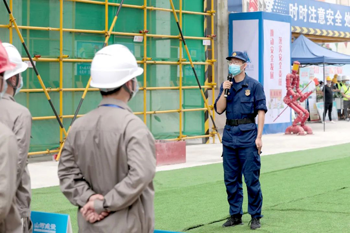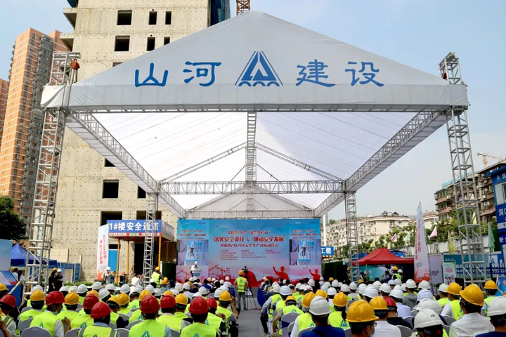 6月2日,武漢市洪山區(qū)2021年“安全生產(chǎn)月”啟動(dòng)儀式暨建筑施工應(yīng)急救援演練活動(dòng)在山河建設(shè)集團(tuán)總承包公司承建的朗詩(shī)·熙華府項(xiàng)目施工現(xiàn)場(chǎng)舉行。洪山區(qū)政府黨組成員牛正可,區(qū)應(yīng)急管理局局長(zhǎng)金昆玲,區(qū)建設(shè)局、消防救援大隊(duì)、和平街道辦事處、建筑管理站等單位領(lǐng)導(dǎo)出席啟動(dòng)儀式,區(qū)發(fā)改局、城管執(zhí)法局、衛(wèi)生健康局、科技和經(jīng)信局、商務(wù)局等近60家單位代表,建設(shè)單位、監(jiān)理單位代表,總承包公司工程團(tuán)隊(duì)及在建項(xiàng)目代表等300余人參加了活動(dòng)。洪山區(qū)建管站站長(zhǎng)錢(qián)偉主持啟動(dòng)儀式。