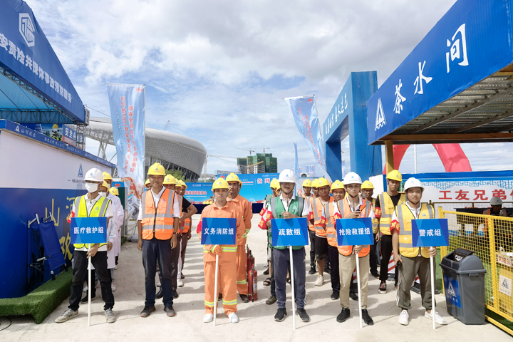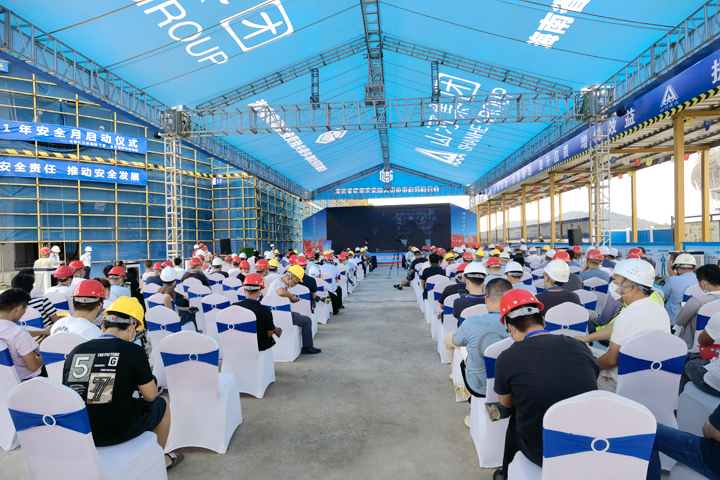 6月9日,山河建設集團海南公司承建的萬寧紅星美凱龍三標段項目施工現(xiàn)場人頭攢動,萬寧市2021年安全生產(chǎn)月啟動儀式暨安全應急演練現(xiàn)場觀摩會在這里舉行。萬寧市住房和城鄉(xiāng)建設局局長陳云鋒,建設工程質(zhì)量安全監(jiān)督站站長嚴云,安委辦主任、應急管理局局長林靖等領導出席活動,海南公司常務副總經(jīng)理程智、工程團隊、項目管理人員及建設單位、監(jiān)理單位、萬寧市各在建項目代表等300余人參加了活動。