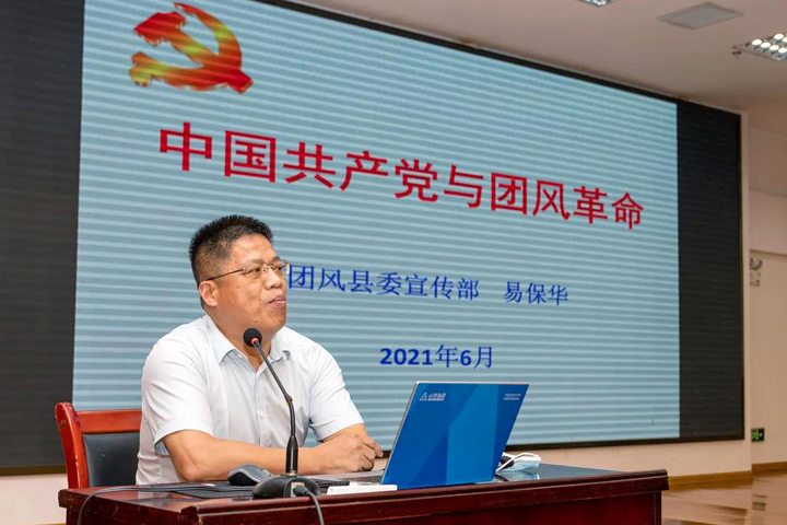 隨后,團(tuán)風(fēng)縣委宣傳部副部長(zhǎng)易保華講授《中國(guó)共產(chǎn)黨與團(tuán)風(fēng)革命》的專題黨課。團(tuán)風(fēng)自古以來就是兵家必爭(zhēng)之地,這片紅色的土地上,走出了一大批老一輩革命家和名人志士,誕生了全國(guó)最早的農(nóng)村基層黨組織,點(diǎn)燃了黃岡革命的火種。老區(qū)人民勇當(dāng)先鋒,敢為人先,“堅(jiān)持28年紅旗不倒”,為中國(guó)革命做出了不可磨滅的貢獻(xiàn)。