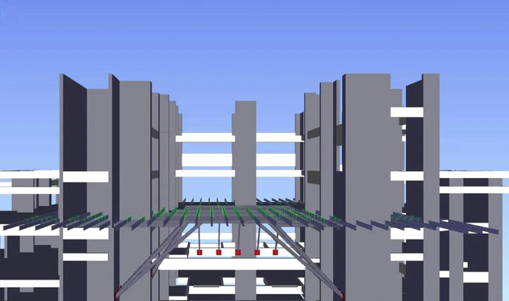 凌空大跨度懸挑結(jié)構(gòu)是目前較為流行的建筑結(jié)構(gòu)類型之一,帶來強(qiáng)烈視覺沖擊力的同時,也給工程施工帶來了巨大挑戰(zhàn)。由于跨度大、荷載復(fù)雜,對施工平臺的要求較高,高空作業(yè)的安全隱患也隨之增加。河南公司工程團(tuán)隊(duì)在平頂山恒大珺睿府項(xiàng)目施工中,以屋面花架施工為依托,針對凹形凌空大跨度懸挑結(jié)構(gòu)(凹形兩側(cè)為樓梯間+電梯井形式)的施工進(jìn)行課題攻關(guān),總結(jié)出了凹形凌空大跨度懸挑結(jié)構(gòu)施工工法。