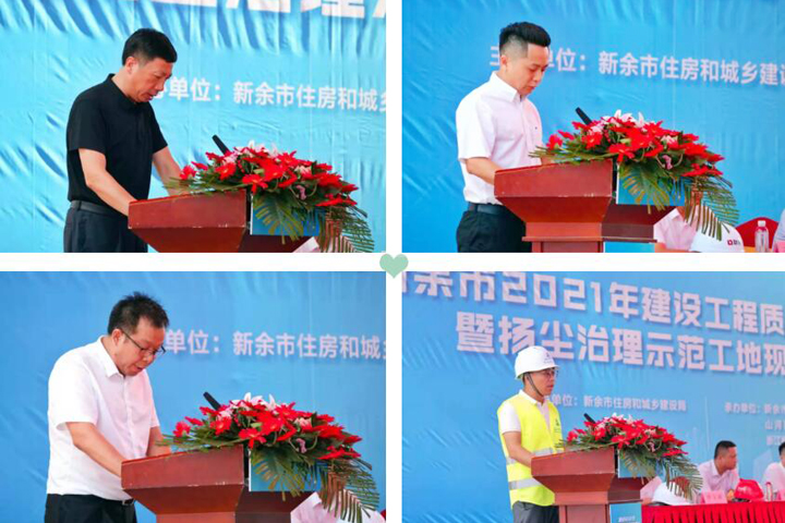 活動(dòng)伊始,新余市建管局局長(zhǎng)何祝生、新余市永越置業(yè)有限公司總經(jīng)理郜文、山河建設(shè)集團(tuán)江西公司總經(jīng)理熊善杰分別發(fā)言,聯(lián)發(fā)永康狀元府項(xiàng)目經(jīng)理袁傳根就項(xiàng)目質(zhì)量安全、揚(yáng)塵治理等方面進(jìn)行了經(jīng)驗(yàn)分享。