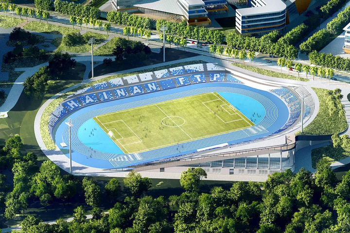 海南公司承建的試驗(yàn)區(qū)體育場(chǎng)項(xiàng)目是園區(qū)的重要組成部分,總用地面積約5.48萬(wàn)平方米,建筑面積5307平方米,采用裝配式施工。體育場(chǎng)建筑層數(shù)為地上二層,總高度24米,并新建室外運(yùn)動(dòng)場(chǎng)1座(含400米標(biāo)準(zhǔn)競(jìng)賽場(chǎng)地22000平方米)。