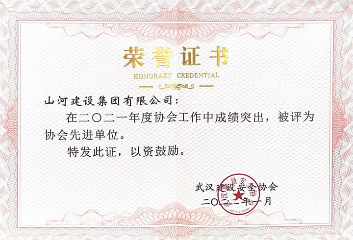 山河集團獲評2021年度武漢建設(shè)安全協(xié)會工作先進單位