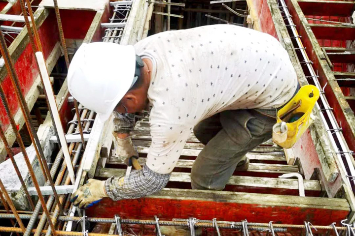 ▲廣州益云智慧物流產業(yè)孵化基地建設項目工人在進行柱箍筋綁扎