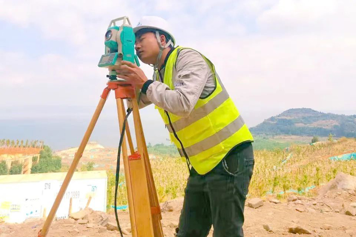 ▲昆明天池公館項目施工員在進行測量