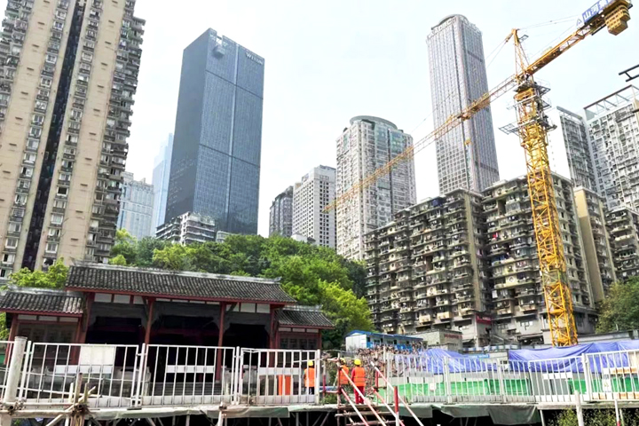 ▲重慶老鼓樓衙署遺址公園項目施工人員抓住晴好天氣加緊施工
