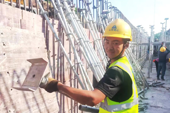 ▲重慶鹿角R1道路項目施工人員在進行道路箱涵模板支撐搭設