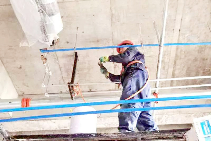 ▲克拉瑪依市獨山子區(qū)匯民國際商業(yè)中心項目工人正在進行地下室安裝工程施工