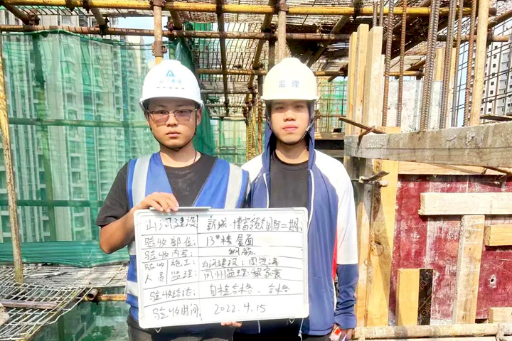 ▲江門市新城博富領會國際二期項目代表和監(jiān)理單位代表舉牌驗收