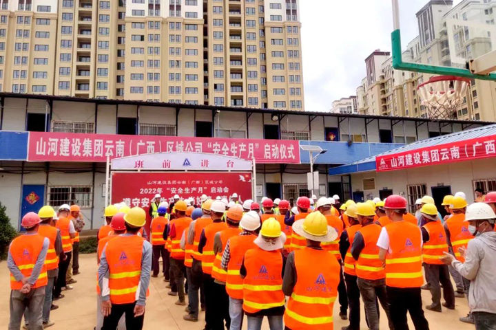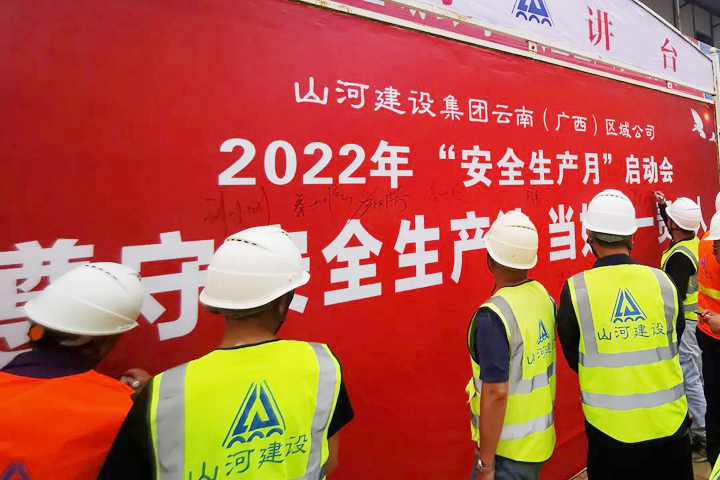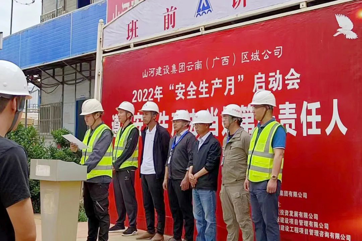 6月1日,山河建設(shè)集團(tuán)云南(廣西)公司2022年安全生產(chǎn)月啟動(dòng)會(huì)在龍四項(xiàng)目及附屬市政道路項(xiàng)目施工現(xiàn)場(chǎng)舉行,圍繞“遵守安全生產(chǎn)法 當(dāng)好第一責(zé)任人”這一主題,對(duì)安全生產(chǎn)月活動(dòng)和近期重點(diǎn)工作進(jìn)行安排部署。云南(廣西)公司副總經(jīng)理兼云南分公司總經(jīng)理劉火焱、副總經(jīng)理秦大順、工程團(tuán)隊(duì)全體人員、在建項(xiàng)目代表及建設(shè)單位代表等近100人參加了活動(dòng)。