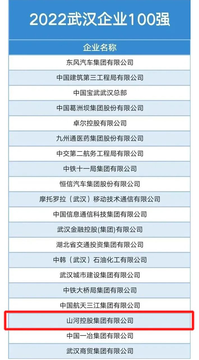 山河集團(tuán)上榜2022武漢企業(yè)百強