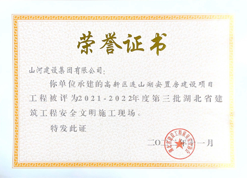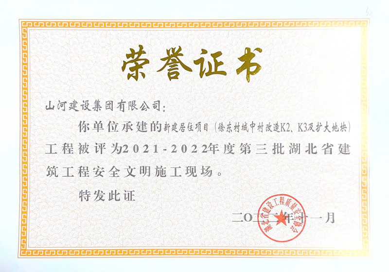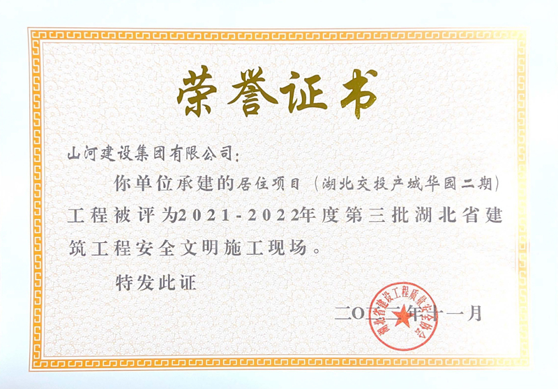 山河集團(tuán)三項(xiàng)工程獲評(píng)湖北省建筑工程安全文明施工現(xiàn)場(chǎng)