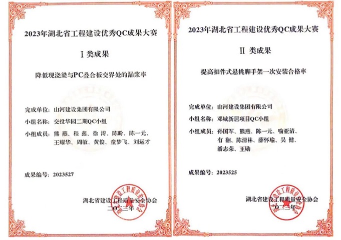 近日,湖北省建設(shè)工程質(zhì)量安全協(xié)會(huì)公布2023年湖北省工程建設(shè)優(yōu)秀QC成果大賽獲獎(jiǎng)名單。山河建設(shè)集團(tuán)申報(bào)的2項(xiàng)成果入選,其中Ⅰ類成果1項(xiàng)、Ⅱ類成果1項(xiàng)。