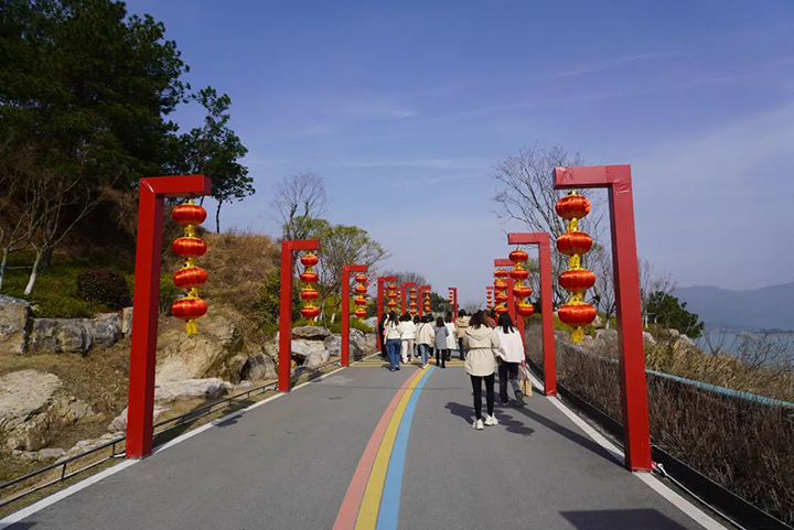 活動(dòng)伊始,全體人員游覽了牛車河的秀美風(fēng)光。牛車河水庫水質(zhì)清澈,自然風(fēng)景秀麗,湖面大小島嶼星羅棋布,有“鄂東千島湖”的美譽(yù)。黛色青山、山澗溪流,靛藍(lán)湖鏡、斑斕嬌花,這一眾美好,沿著參觀路線前行,皆可在牛車河畔逐一遇見。