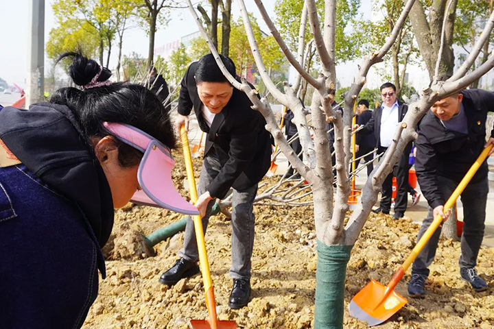 揮鍬鏟土、扶苗填壓、培土澆水……大家分為三人一組,通力合作,配合默契,種下一棵棵象征生機(jī)與希望的苗木。經(jīng)過一番辛苦勞作,一株株樹苗列成整齊的隊(duì)伍,迎著和煦的陽光昂首屹立,呈現(xiàn)出一片濃濃的春意。它們將在建設(shè)者的呵護(hù)下蓬勃生長,扮靚城市顏值。