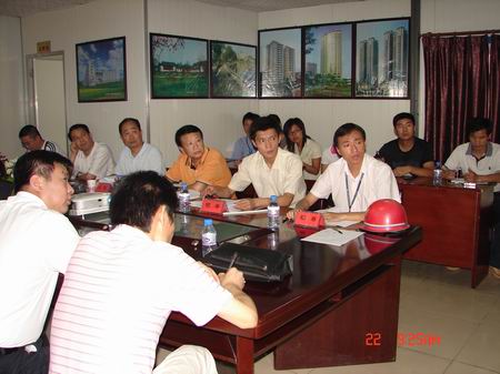 山河集團(tuán)航天雙城項(xiàng)目創(chuàng)國(guó)優(yōu)工程匯報(bào)會(huì)于2008年6月22日在航天雙城項(xiàng)目部會(huì)議室召開(kāi)。出席本次會(huì)議的有武漢市質(zhì)量監(jiān)督站領(lǐng)導(dǎo)何水橋、鄭祥斌同志;江岸區(qū)建筑管理站領(lǐng)導(dǎo)胡直剛、王先訓(xùn)、李斌等同志;武漢三江東立投資發(fā)展有限公司李副總及監(jiān)理公司工程師歐陽(yáng)斌、方軍華等同志。集團(tuán)公司航天雙城創(chuàng)國(guó)優(yōu)領(lǐng)導(dǎo)小組舒先厚、黃林、王平等全體成員及部分項(xiàng)目部中高層管理人員共計(jì)24人參加了本次會(huì)議。