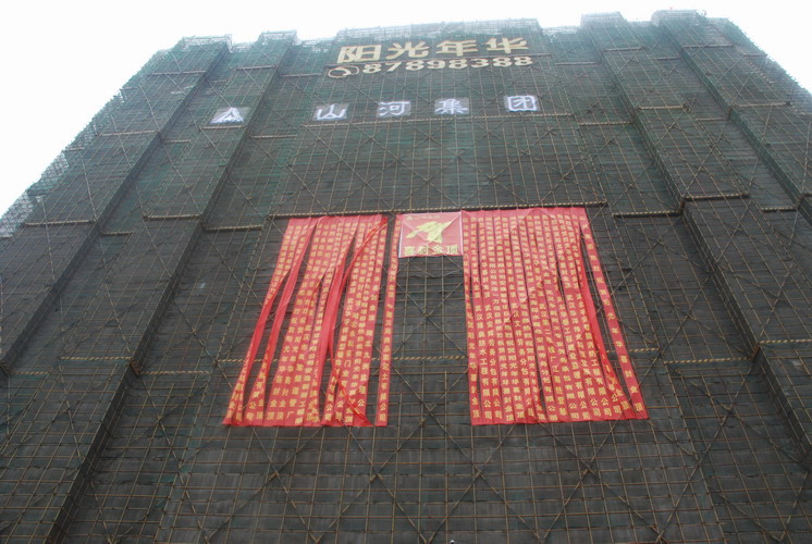 2008年7月18日由山河集團(tuán)項(xiàng)目經(jīng)理馮海堂承建的陽光年華工程喜封金頂。該工程位于中南一路48號,屬于綜合樓建筑面積35966O??蚣艚Y(jié)構(gòu),地上32層;建設(shè)單位:湖北陽光世紀(jì)置業(yè)有限公司;設(shè)計單位:湖北天一建筑設(shè)計有限公司;監(jiān)理單位:湖北九洲監(jiān)理公司。