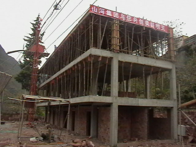 我公司承建的四川省漢源縣大堰鄉(xiāng)中心小學(xué)工程經(jīng)過(guò)兩個(gè)多月的緊張有序施工,已經(jīng)初見(jiàn)雛形。宿舍樓主體結(jié)構(gòu)已經(jīng)封頂,一層填充墻砌筑完成;教學(xué)樓三層主體結(jié)構(gòu)正在施工,預(yù)計(jì)本月23日主體可以封頂;綜合樓施工至一層結(jié)構(gòu)。整個(gè)工程計(jì)劃將于2008年12月28日竣工。